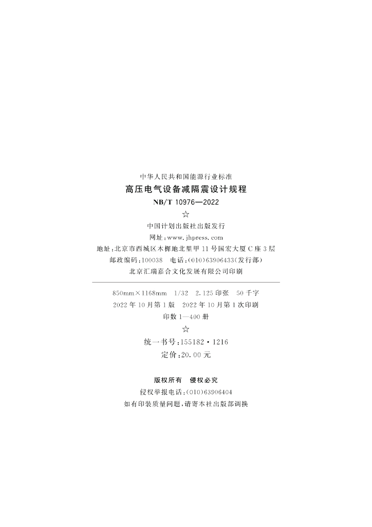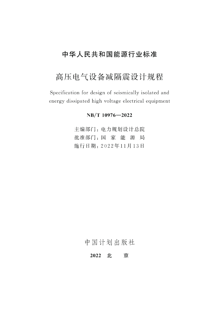 NB/T 10976-2022 高压电气设备减隔震设计规程