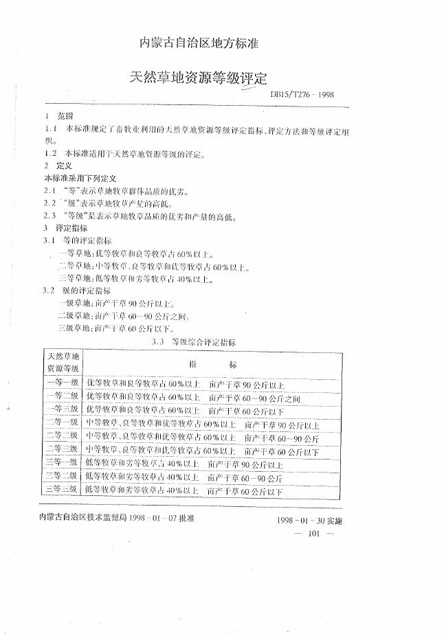 DB15/T 276-1998 天然草地资源等级评定