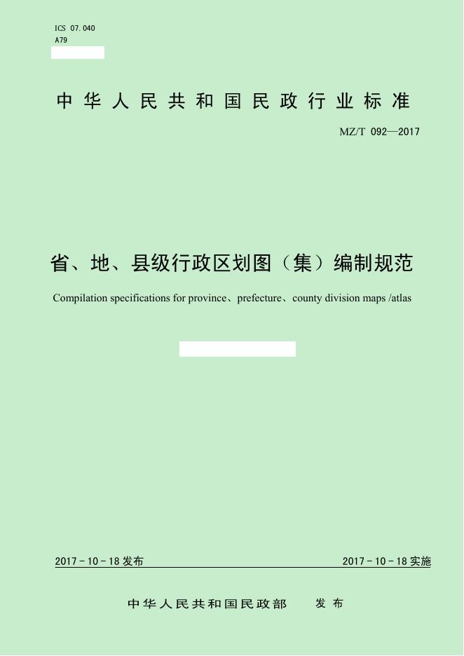 MZ/T 092-2017 省、地、县级行政区划图(集)编制规范