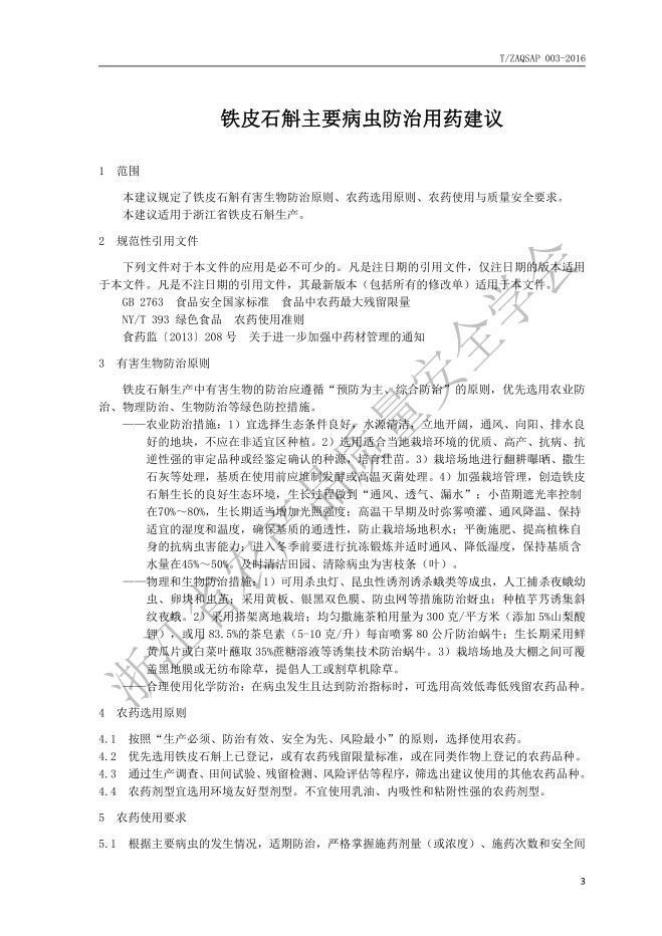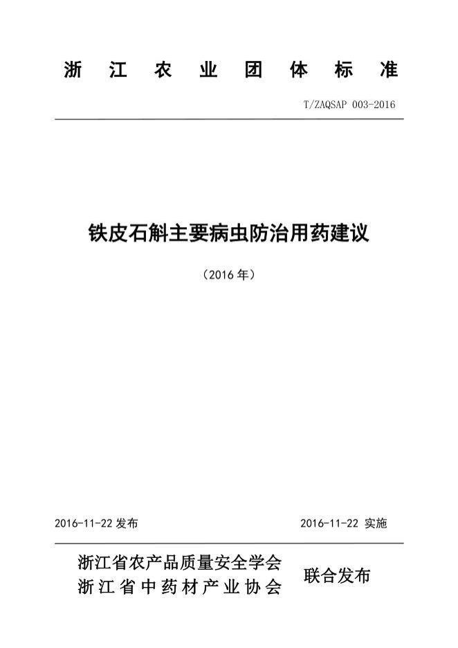 T/ZAQSAP 003-2016 铁皮石斛主要病虫防治用药建议(2016年)