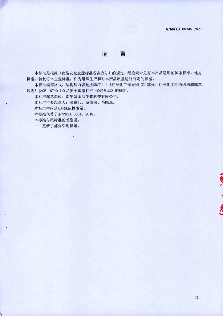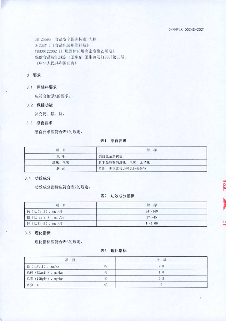 Q/NNFLX 0034S-2021 富莱欣牌钙镁锌咀嚼片(保健食品)