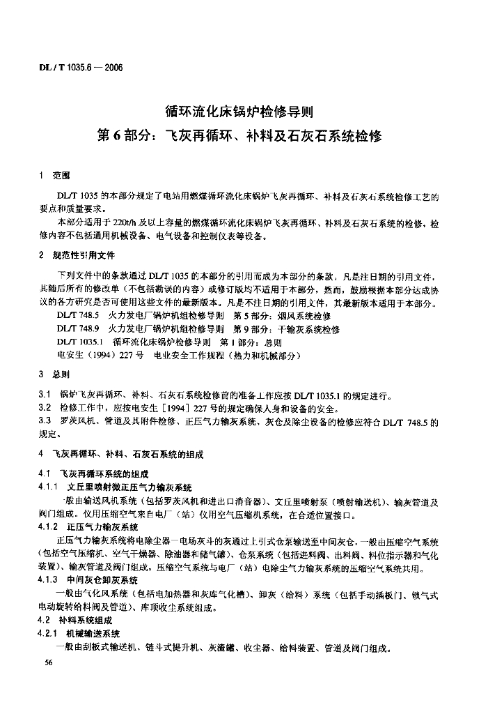 DL/T 1035.6-2006 循环流化床锅炉检修导则 第6部分 飞灰再循环、补料及石灰石系统检修