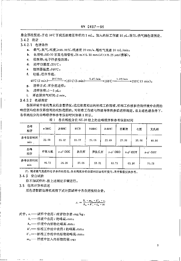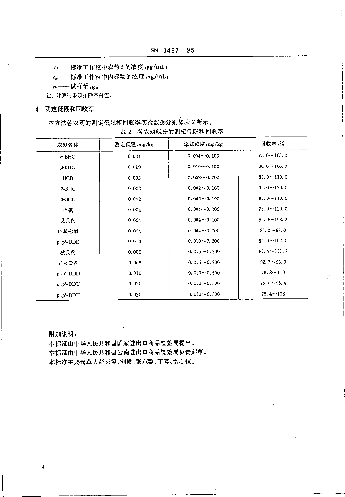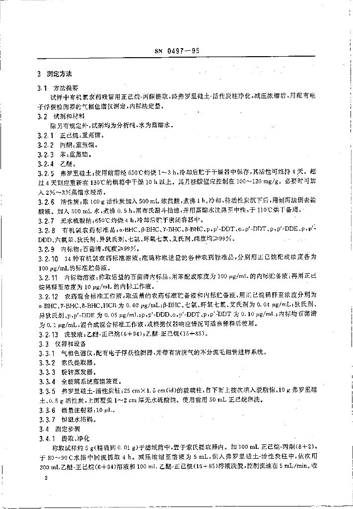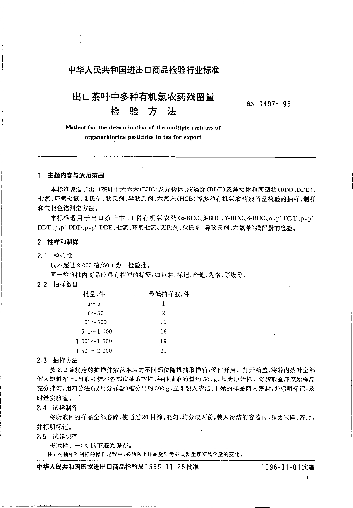 SN 0497-1995 出口茶叶中多种有机氯农药残留量检验方法