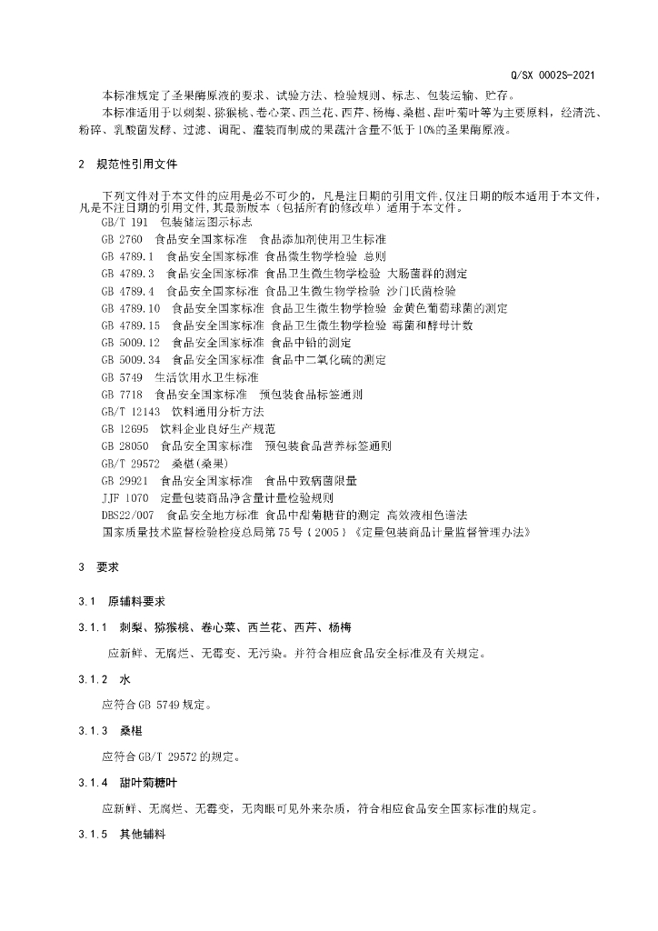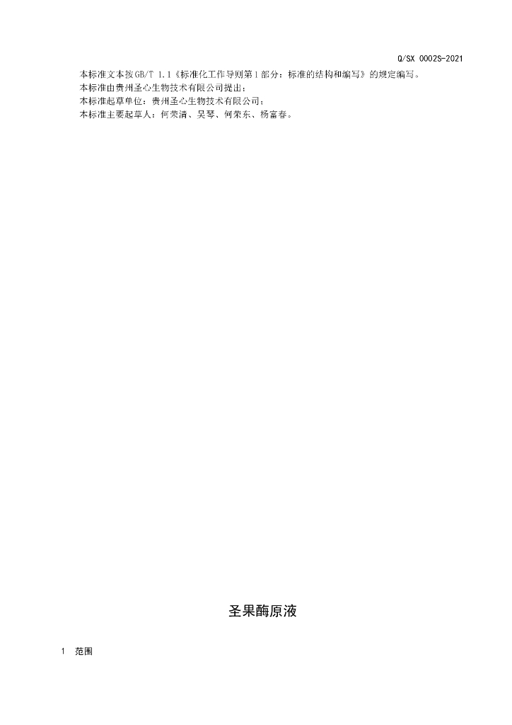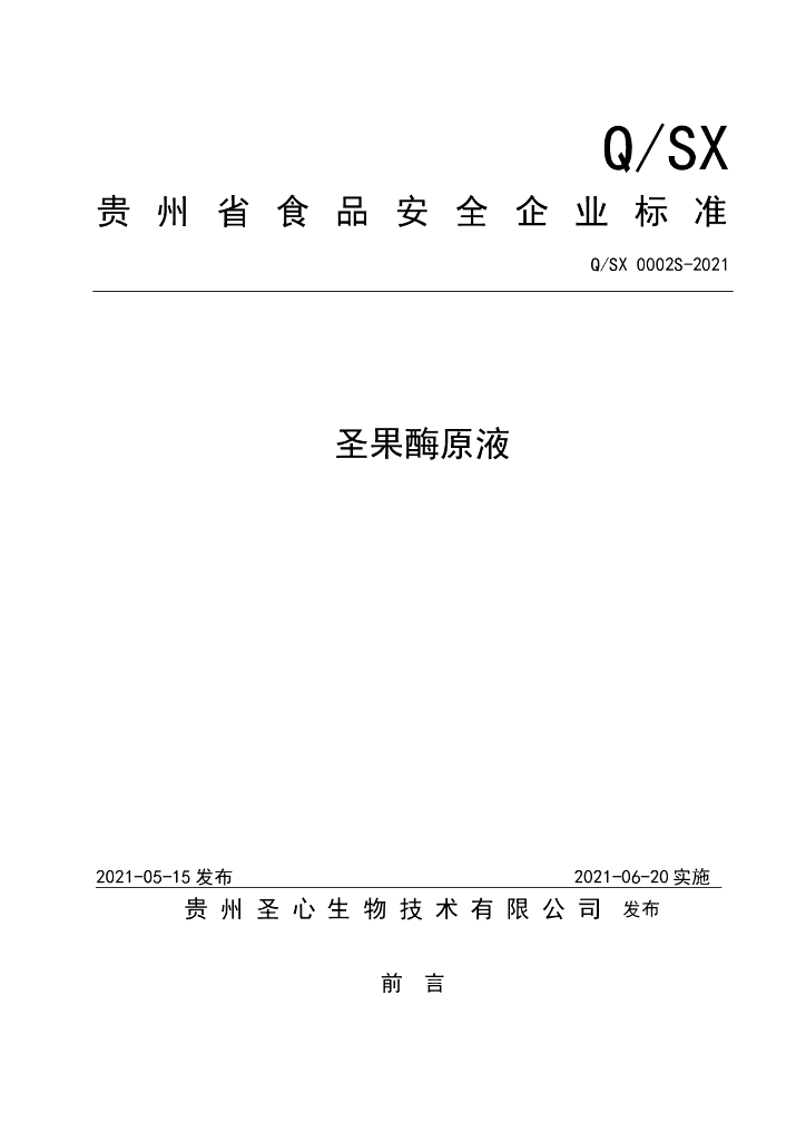Q/SX 0002S-2021 圣果酶原液