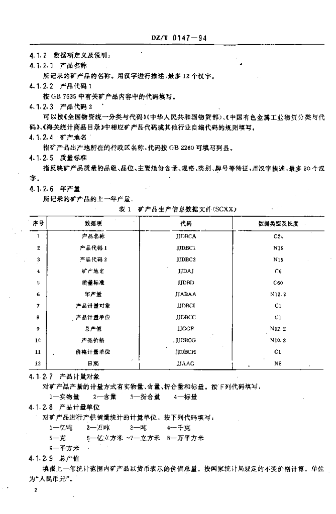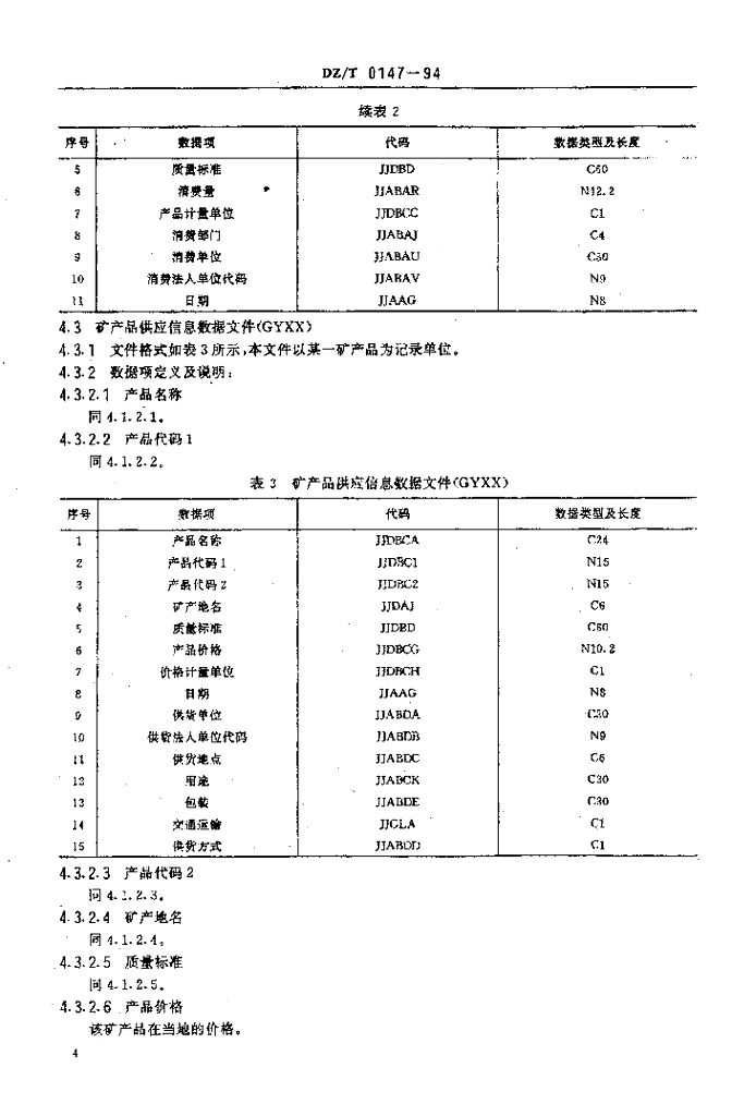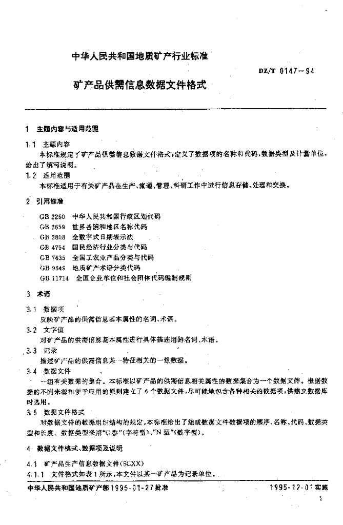 DZ/T 0147-1994 矿产品供需信息数据文件格式