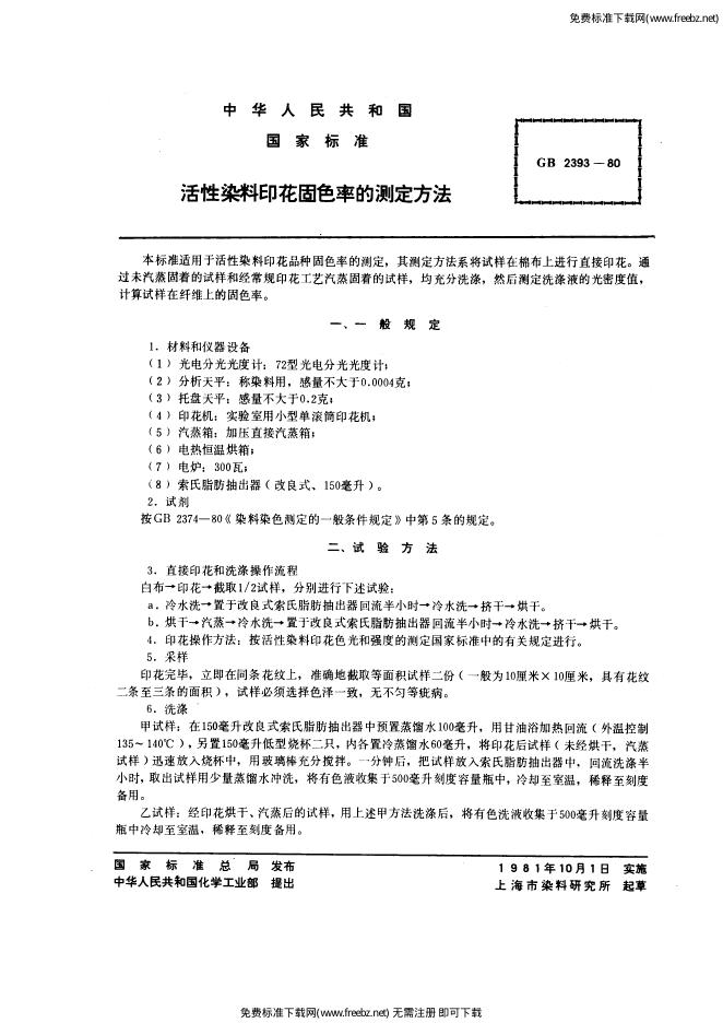 GB/T 2393-1980 活性染料印花固色率的测定方法