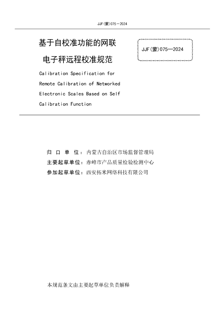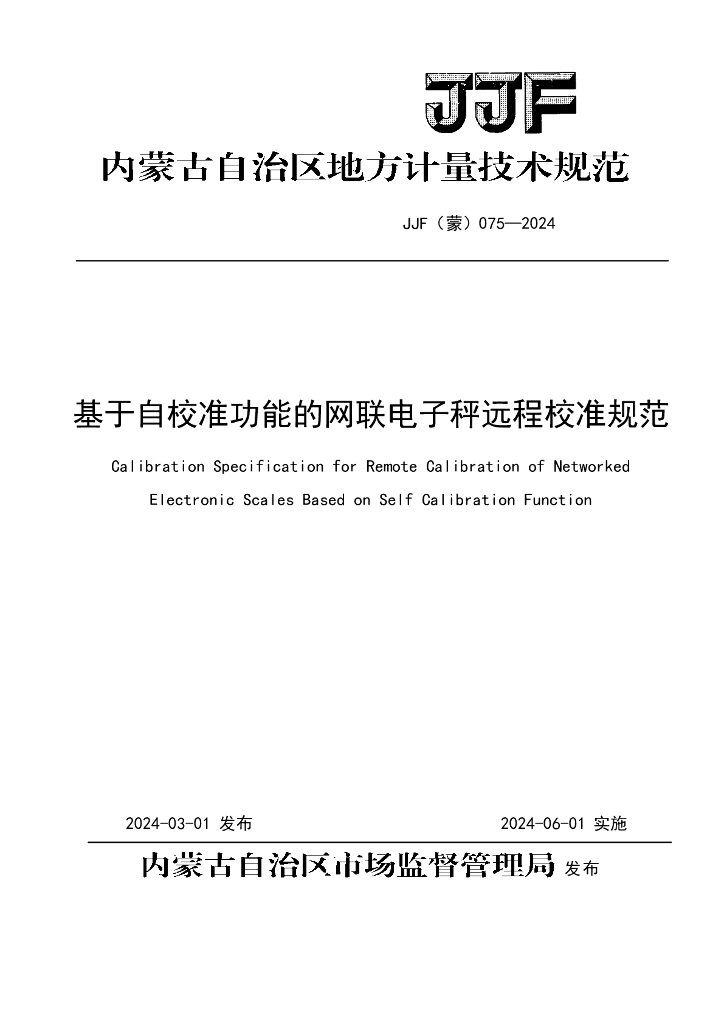 JJF(蒙)075-2024 基于自校准功能的网联电子秤远程校准规范