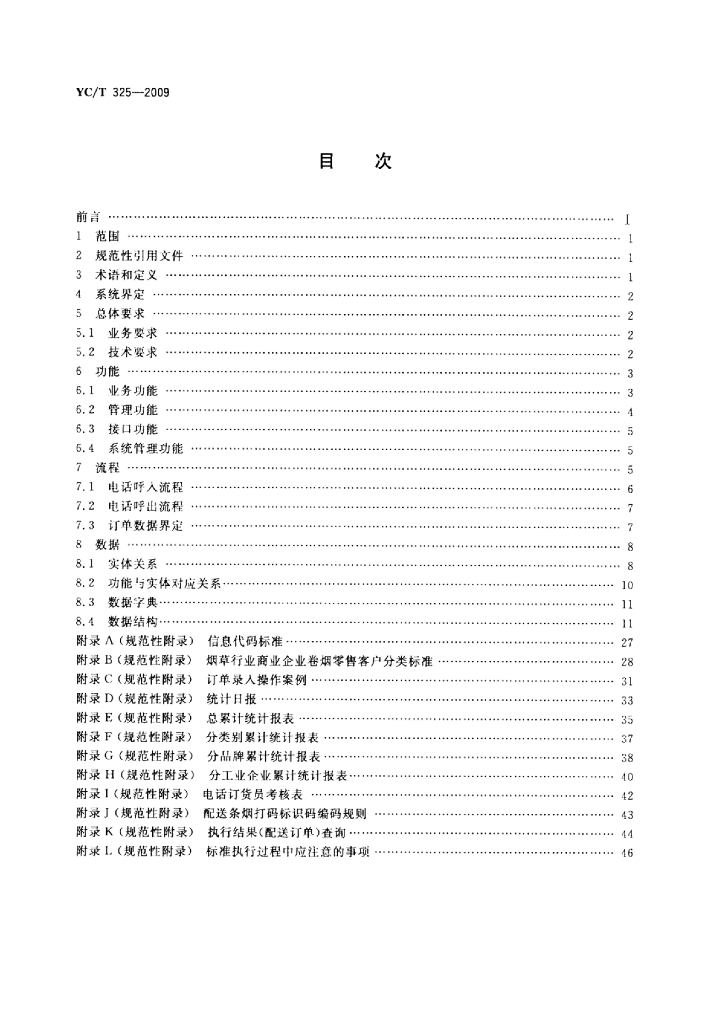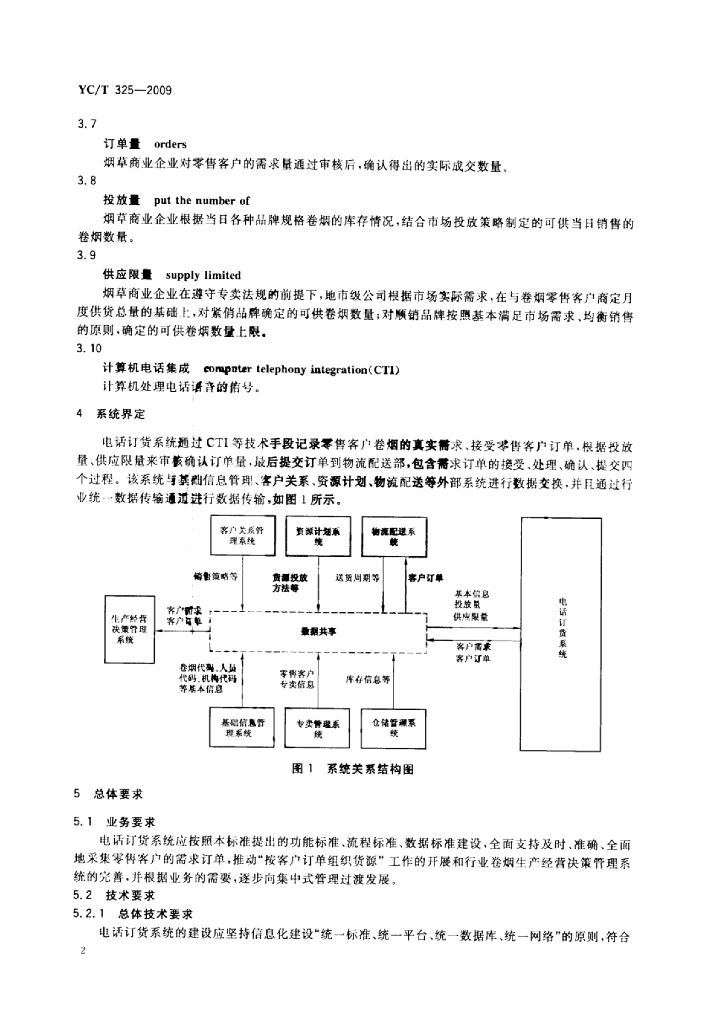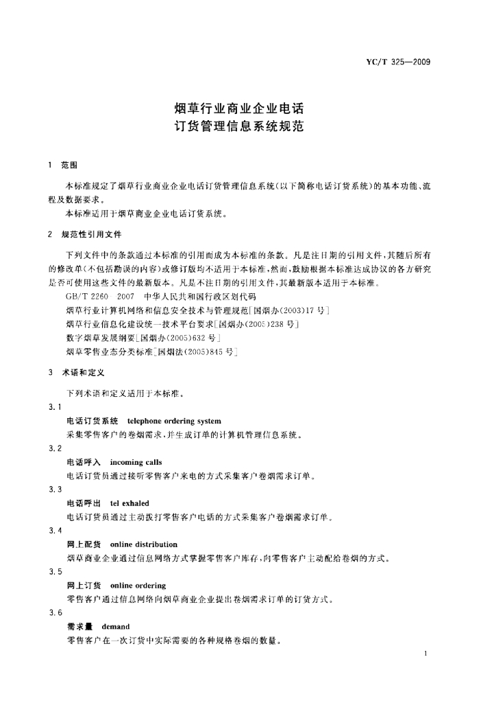 YC/T 325-2009 烟草行业商业企业电话订货管理信息系统规范