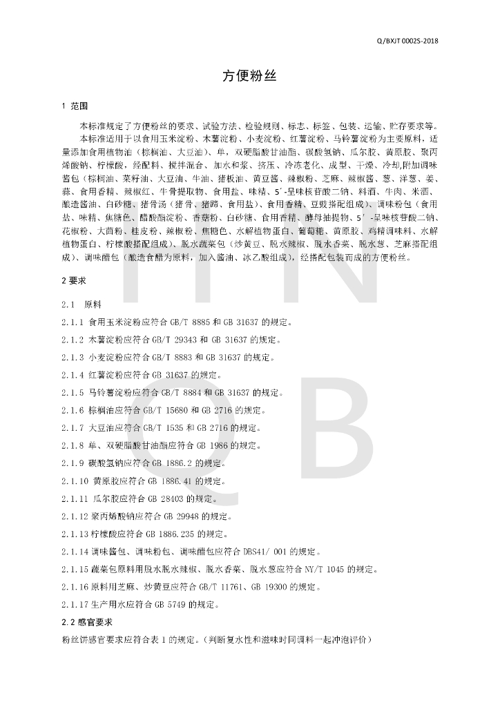 Q/BXJT 0002S-2018 方便粉丝