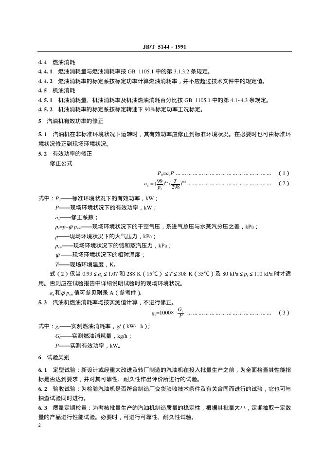 JB/T 5144-1991 工程机械用汽油机 性能试验方法