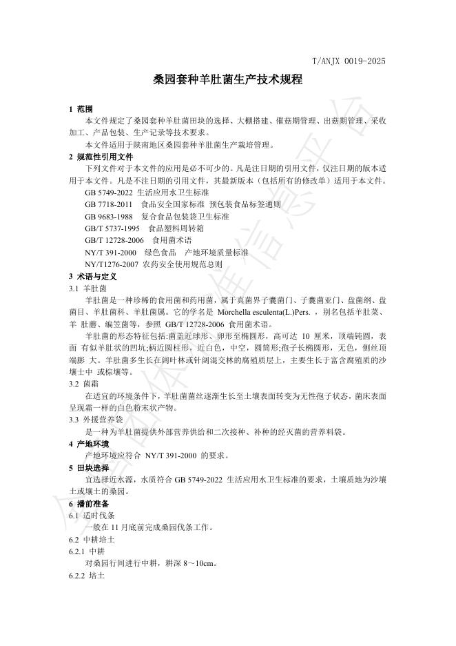 T/ANJX 0019-2025 桑园套种羊肚菌生产技术规程