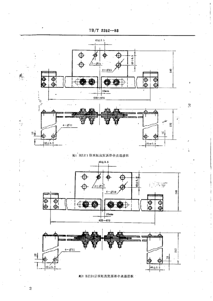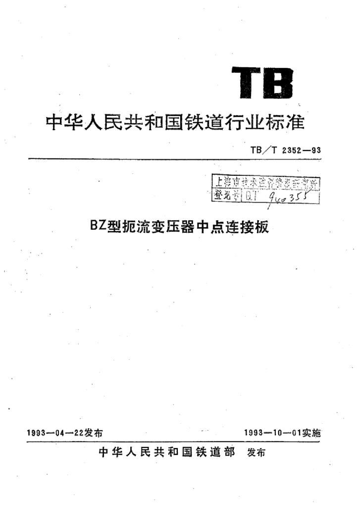 TB/T 2352-1993 BZ型扼流变压器中点连接板