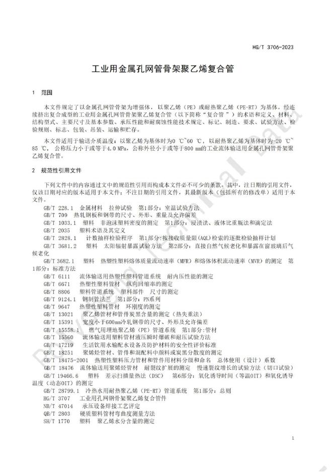 HG/T 3706-2024 工业用金属孔网管骨架聚乙烯复合管
