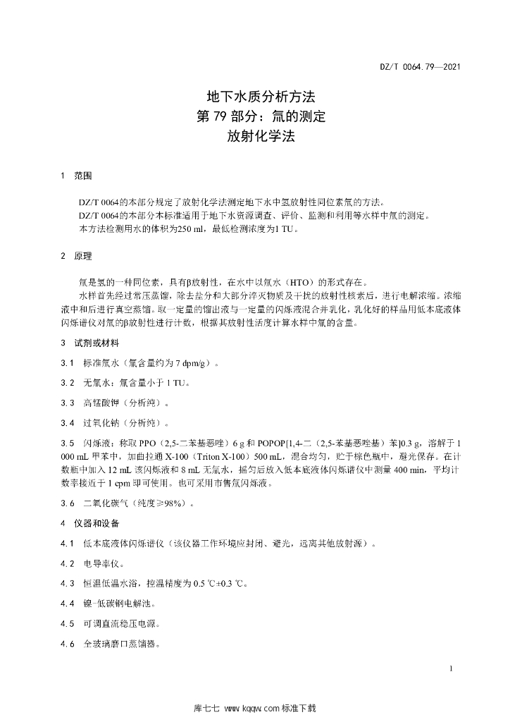 DZ/T 0064.79-2021 地下水质分析方法 第79部分:氚的测定放射化学法