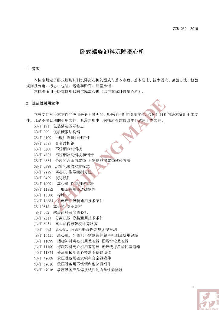 T/ZZB 030-2015 卧式螺旋卸料沉降离心机