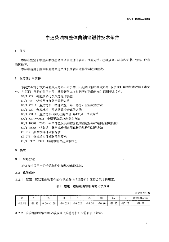 CB/T 4313-2013 中速柴油机整体曲轴钢锻件技术条件