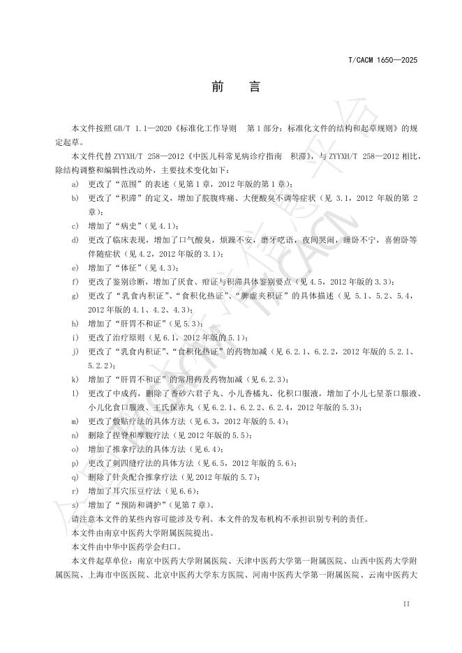 T/CACM 1650-2025 儿童积滞中医诊疗指南