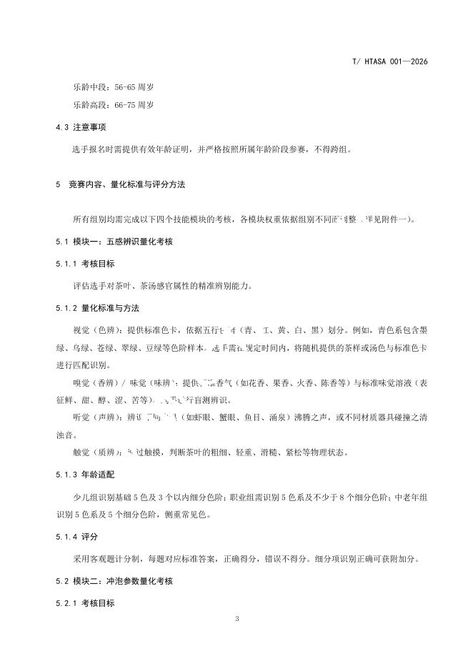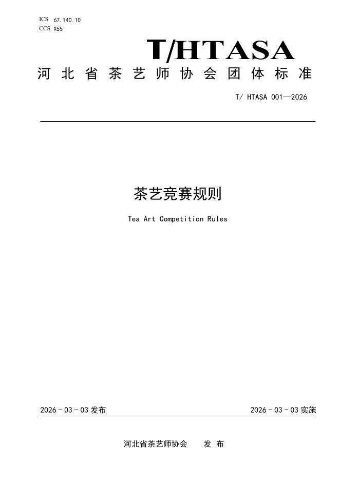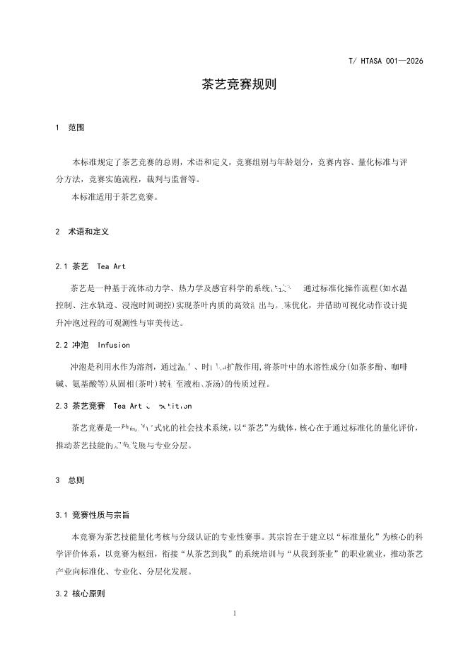 T/HTASA 001-2026 茶艺竞赛规则