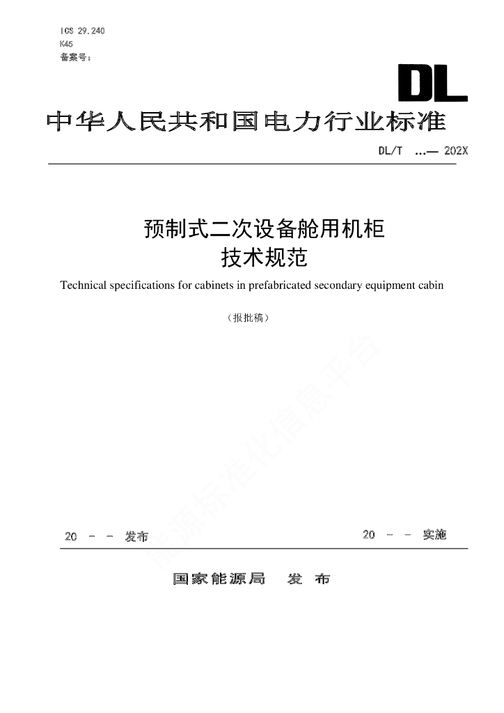 DL/T 2383-2021 预制式二次设备舱用机柜技术规范
