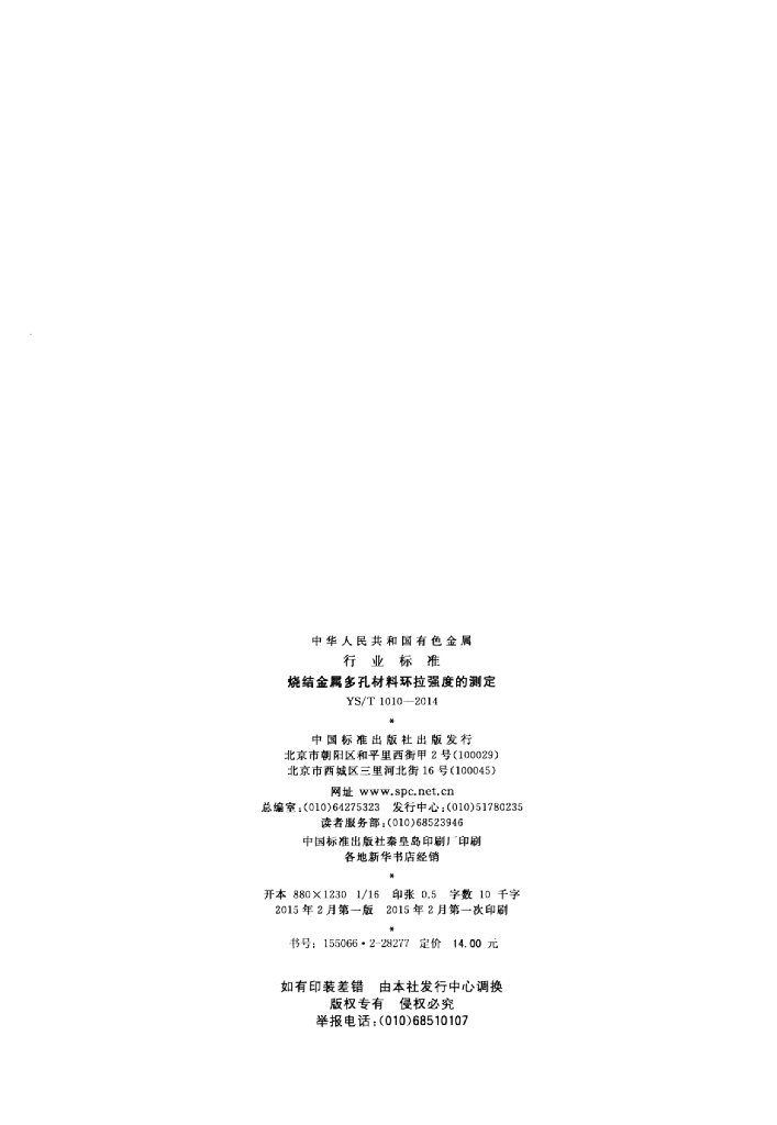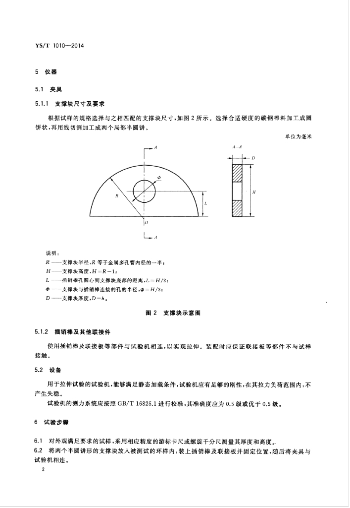 YS/T 1010-2014 烧结金属多孔材料环拉强度的测定