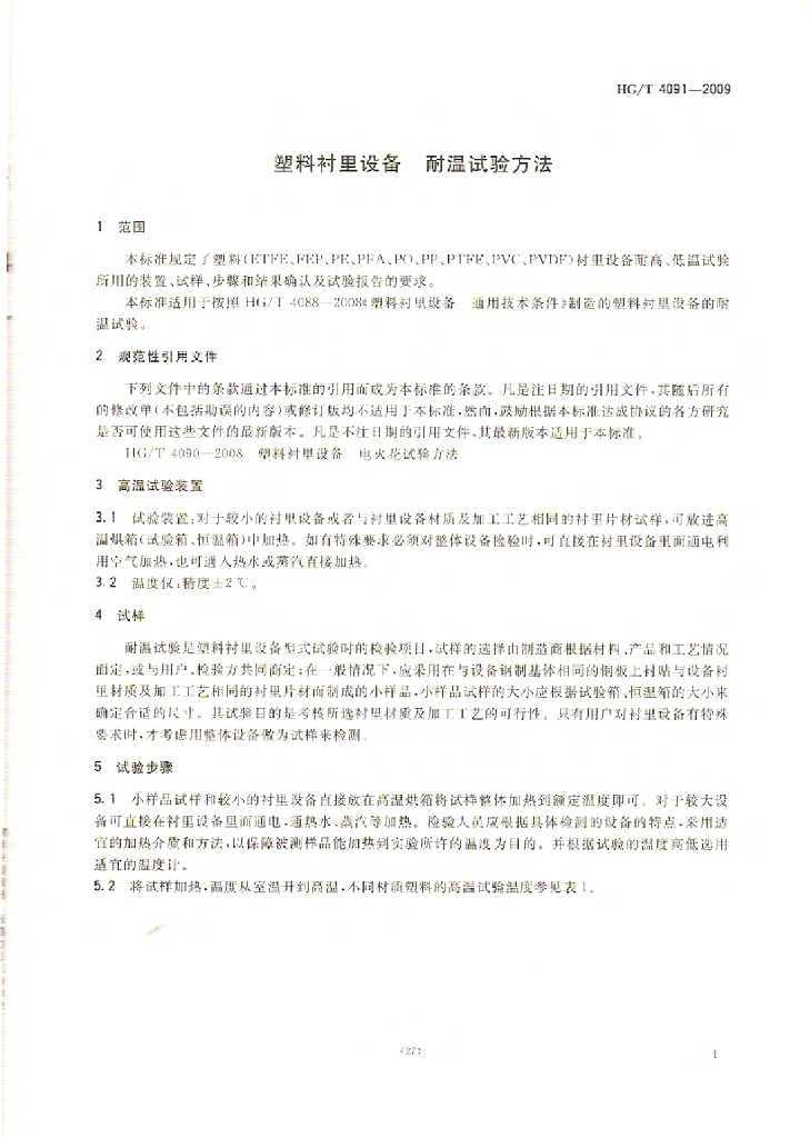 HG/T 4091-2009 塑料衬里设备 耐温试验方法