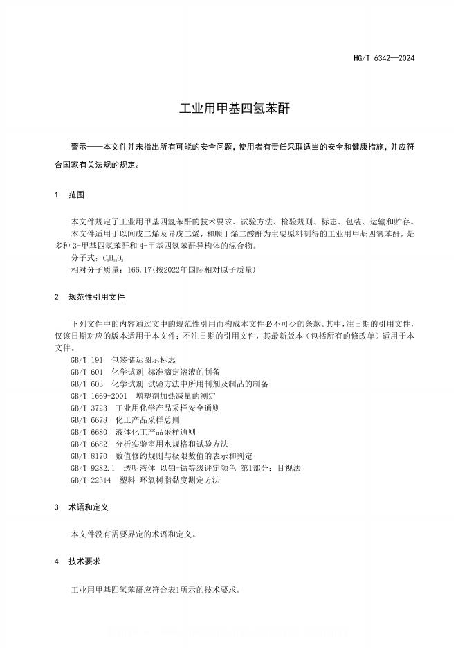 HG/T 6342-2024 工业用甲基四氢苯酐