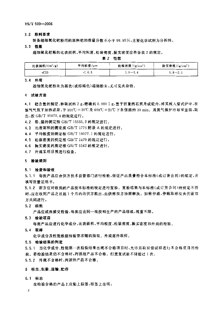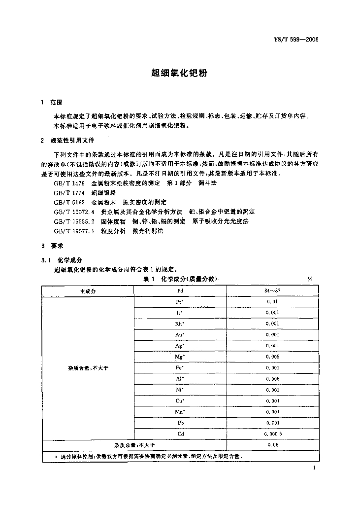 YS/T 599-2006 超细氧化钯粉