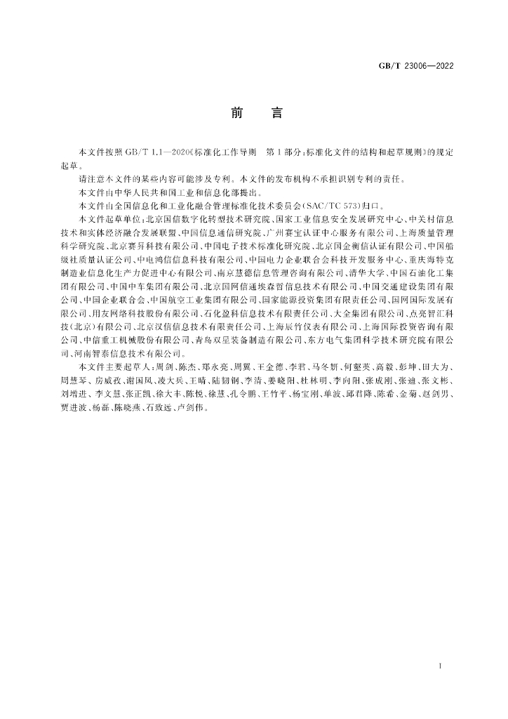 北京国信数字化转型技术研究院、中关村信息技术和实体经济融合发展联盟、广州赛宝认证中心服务有限公司、北京赛昇科技有限公司、北京国金衡信认证有限公司、中电鸿信信息科技有限公司、重庆海特克制造业信息化生产力促进中心有限公司、清华大学、中国中车集团有限公司、中国交通建设集团有限公司、中国航空工业集团有限公司、国网国际发展有限公司、石化盈科信息技术有限责任公司、点亮智汇科技(北京)有限公司、上海辰竹仪表有限公司、中信重工机械股份有限公司、东方电气集团科学技术研究院有限公司、国家工业信息安全发展研究中心、中国信息通信
