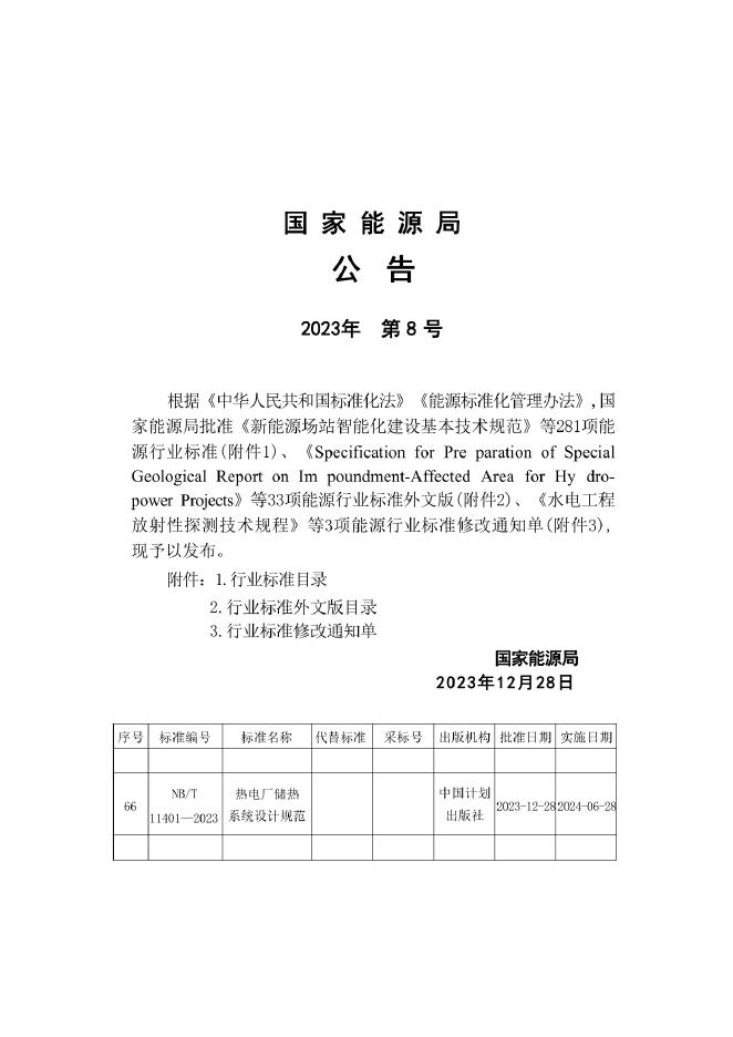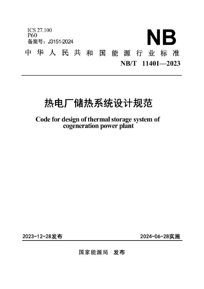 NB/T 11401-2023 热电厂储热系统设计规范(附条文说明)