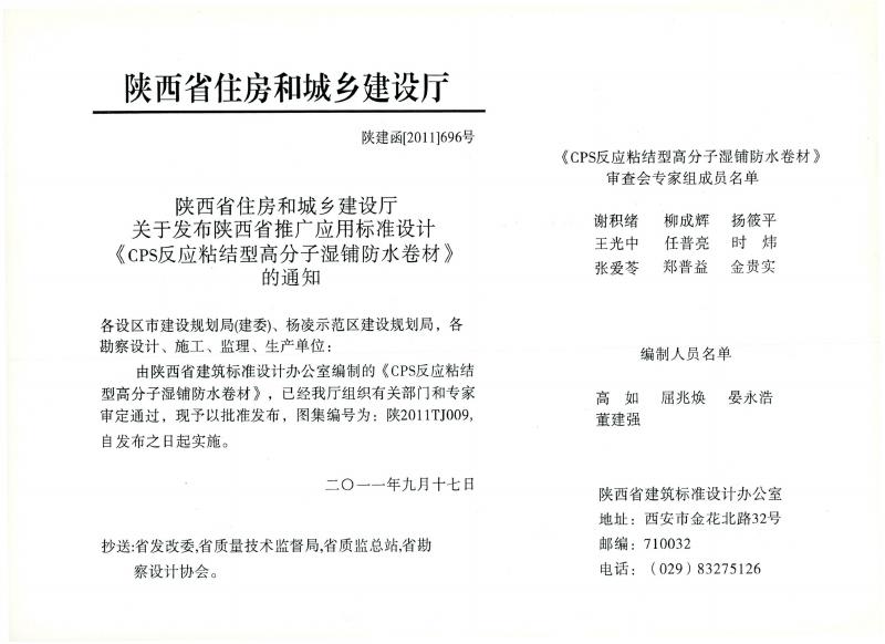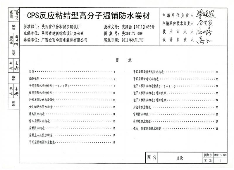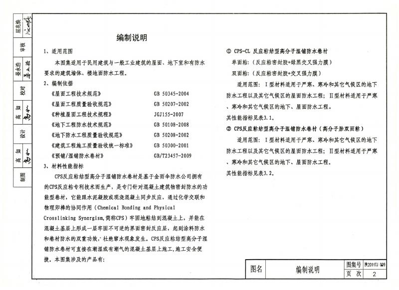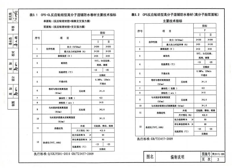 陕2011TJ009 CPS反应粘结型高分子湿铺防水卷材图集