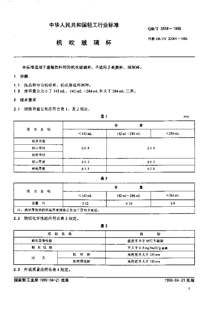 QB/T 3558-1999 机吹玻璃杯