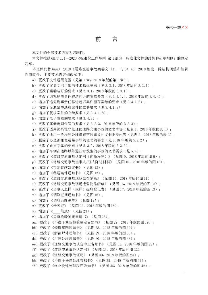 GA 40-20XX 道路交通事故案卷文书(征求意见稿)