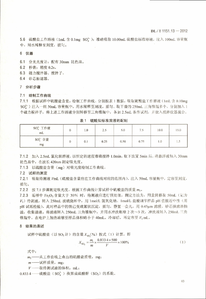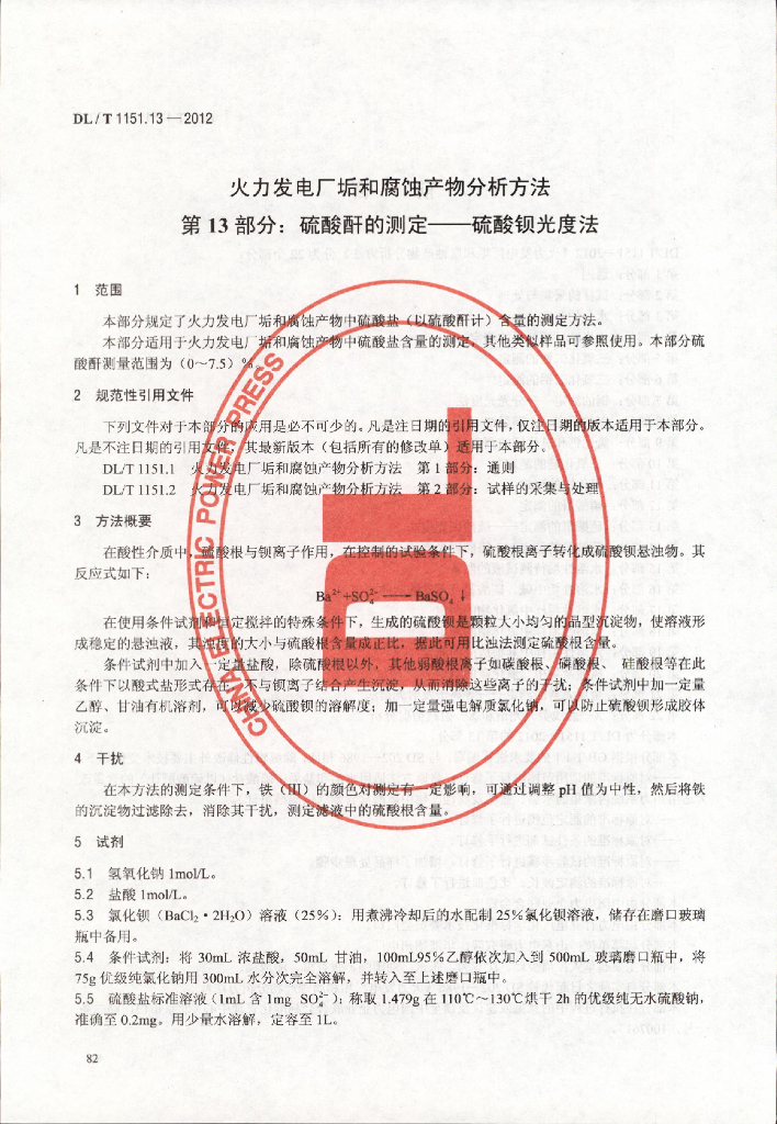 DL/T 1151.13-2012 火力发电厂垢和腐蚀产物分析方法 第13部分:硫酸酐的测定 硫酸钡光度法