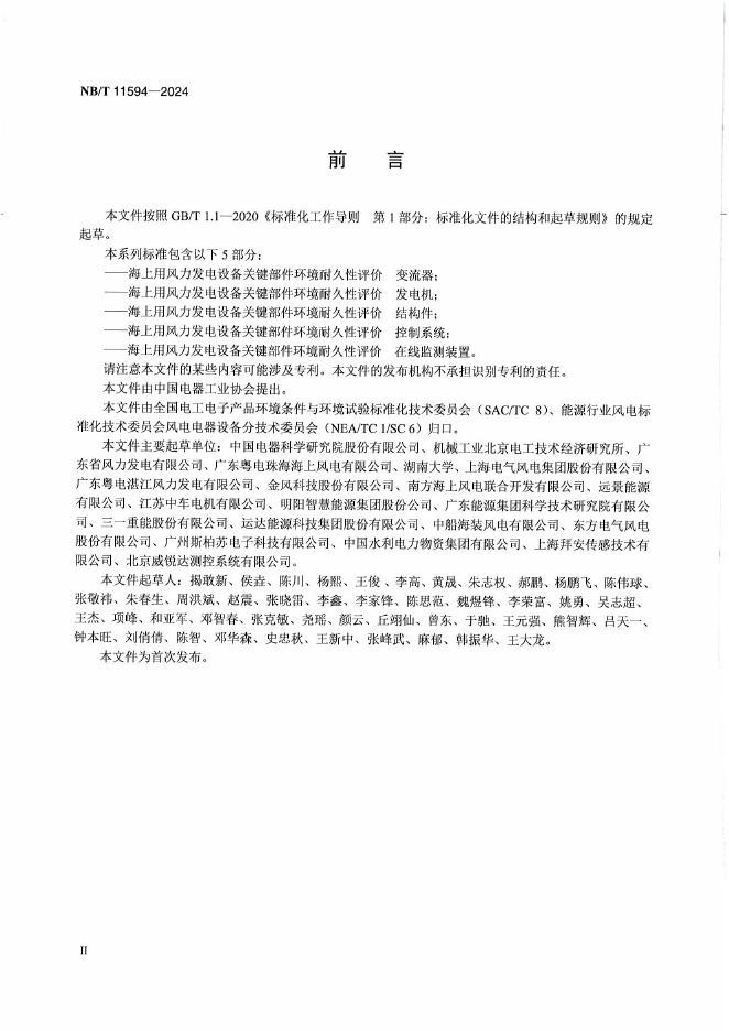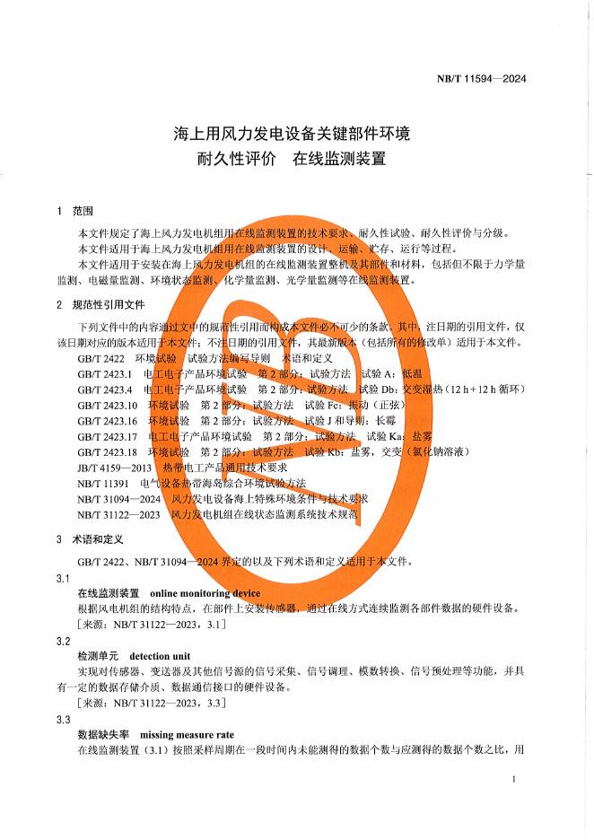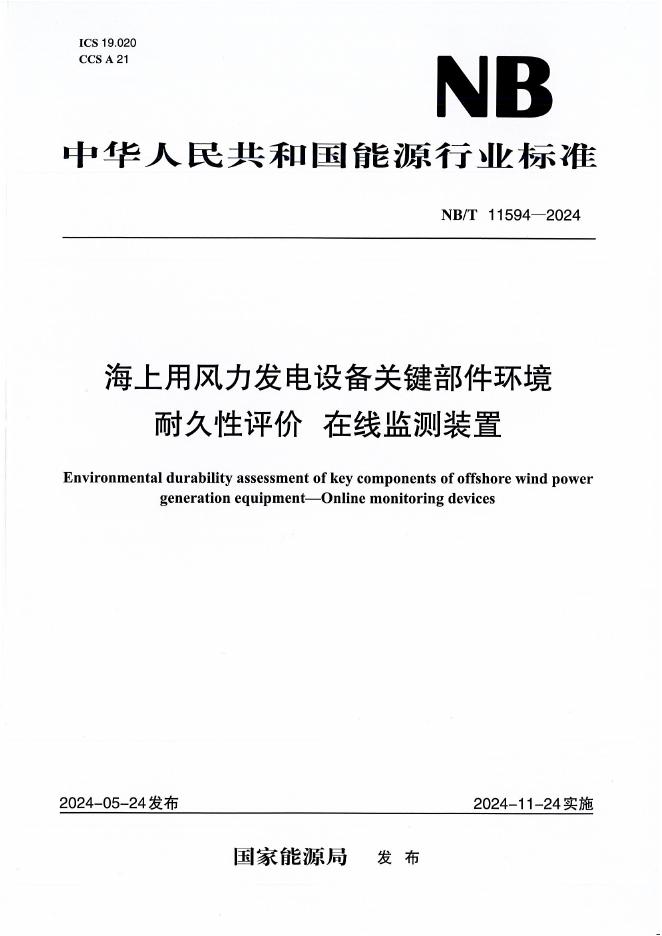NB/T 11594-2024 海上用风力发电设备关键部件环境耐久性评价在线监测装置