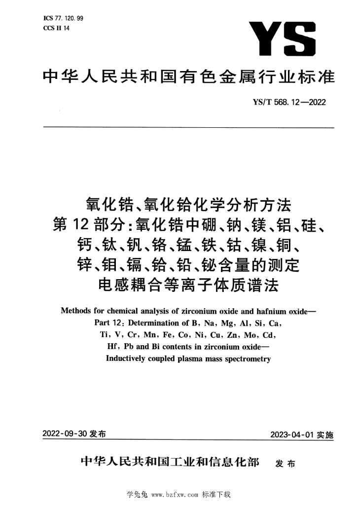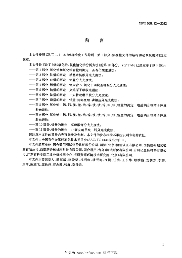 国合通用测试评价认证股份公司、国标(北京)检验认证有限公司、国核锆铪理化检测有限公司、西部新锆核材料科技有限公司、国合通用(青岛)测试评价有限公司、有研亿金新材料有限公司广东省科学院工业分析检测中心、有研资源环境技术研究院(北京)有限公司