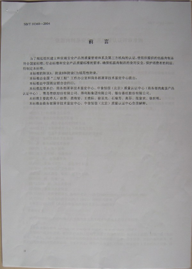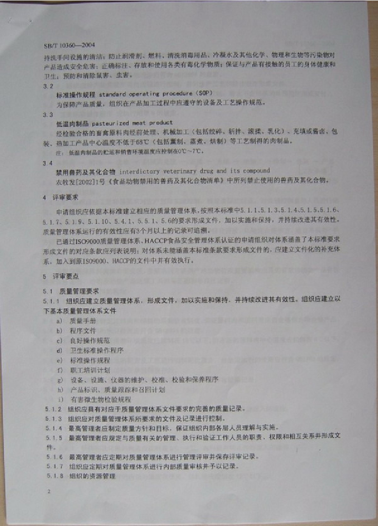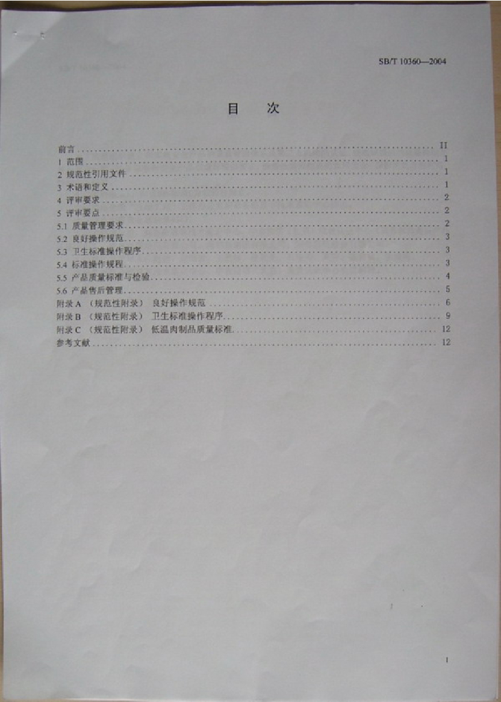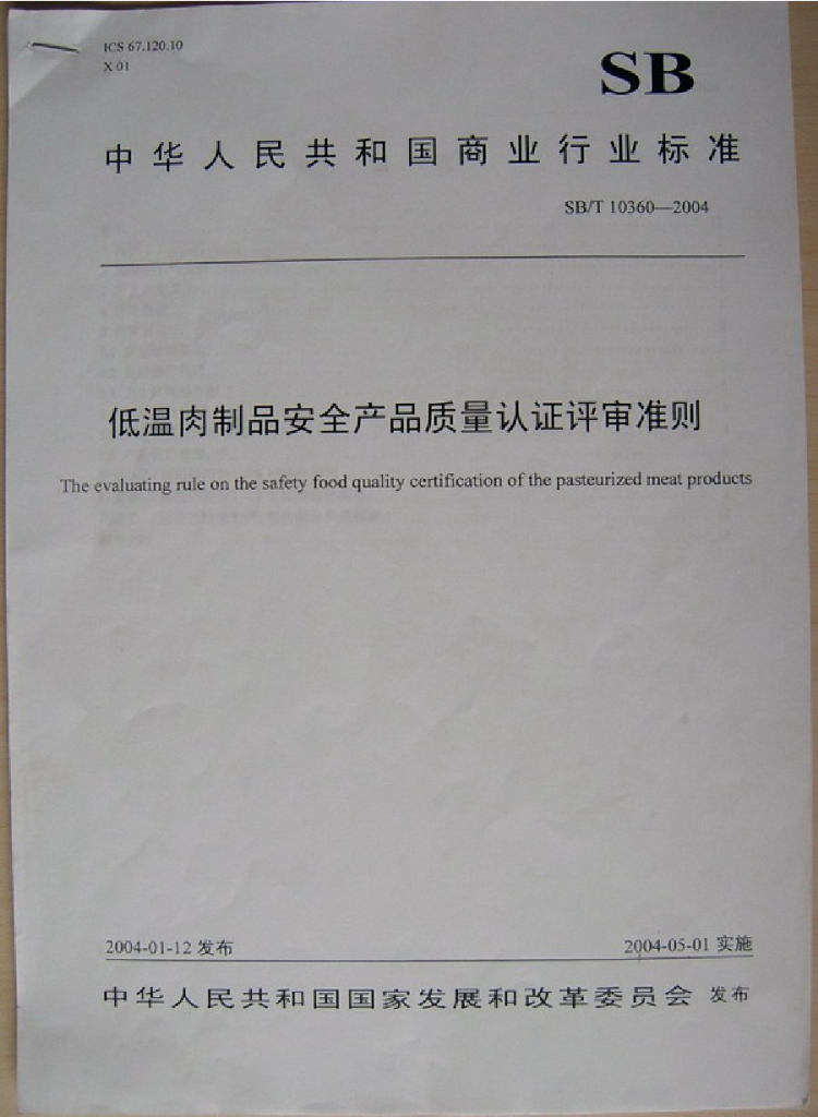 SB/T 10360-2004 低温肉制品安全产品质量认证评审准则