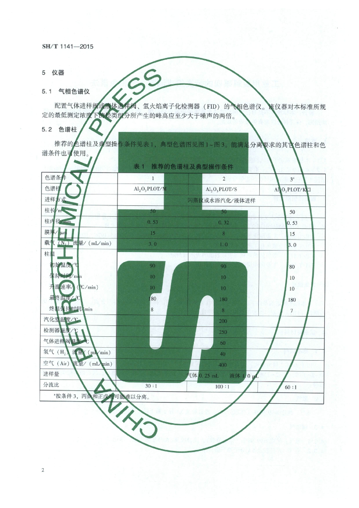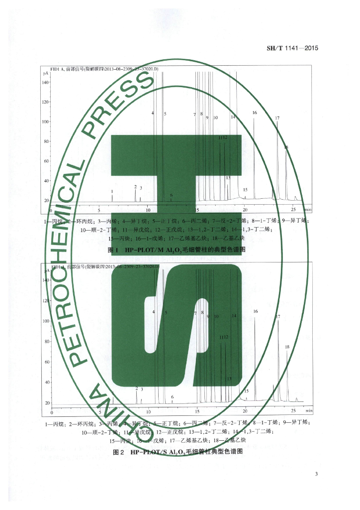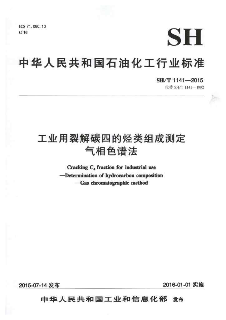 SH/T 1141-2015 工业用裂解碳四的烃类组成测定 气相色谱法