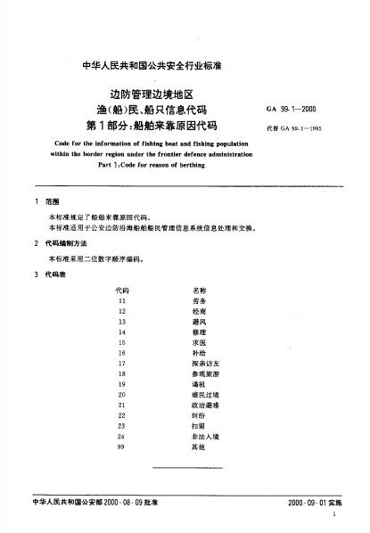 GA 99.1-1995 船舶来靠岸原因代码