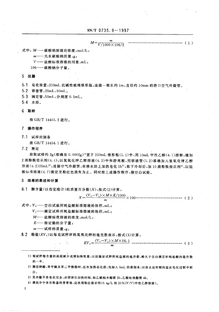 SN/T 0735.9-1997 出口芳香油、单离和合成香料酯的测定