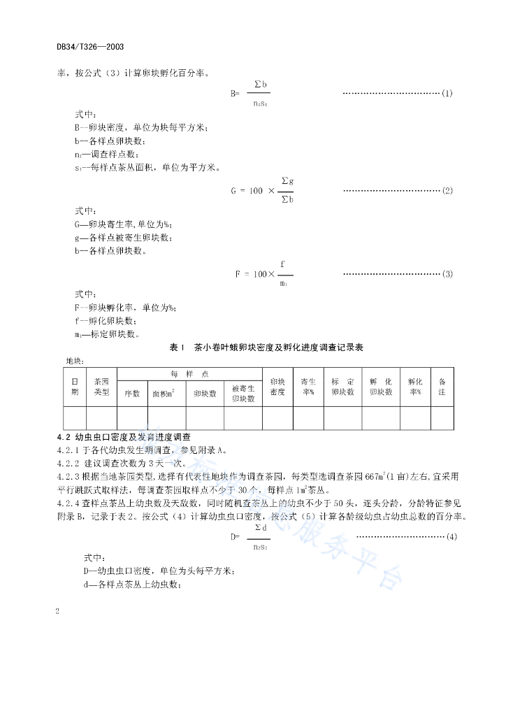 DB34/T 326-2003 茶小卷叶蛾测报调查和防治技术