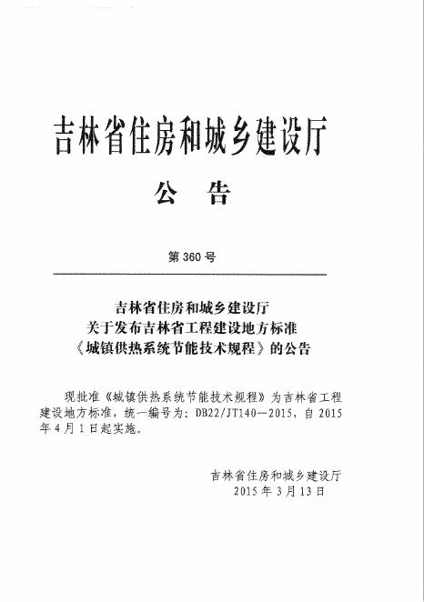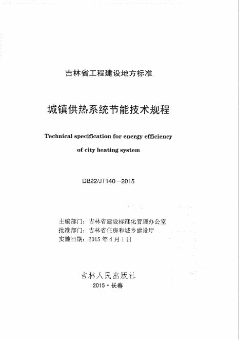 DB22/JT 140-2015 城镇供热系统节能技术规程