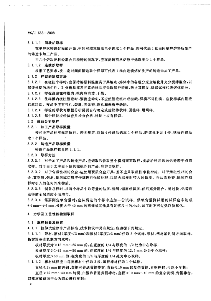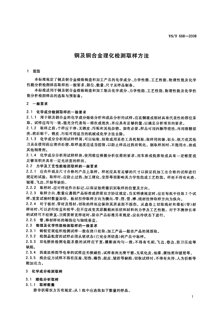 YS/T 668-2008 铜及铜合金理化检测取样方法