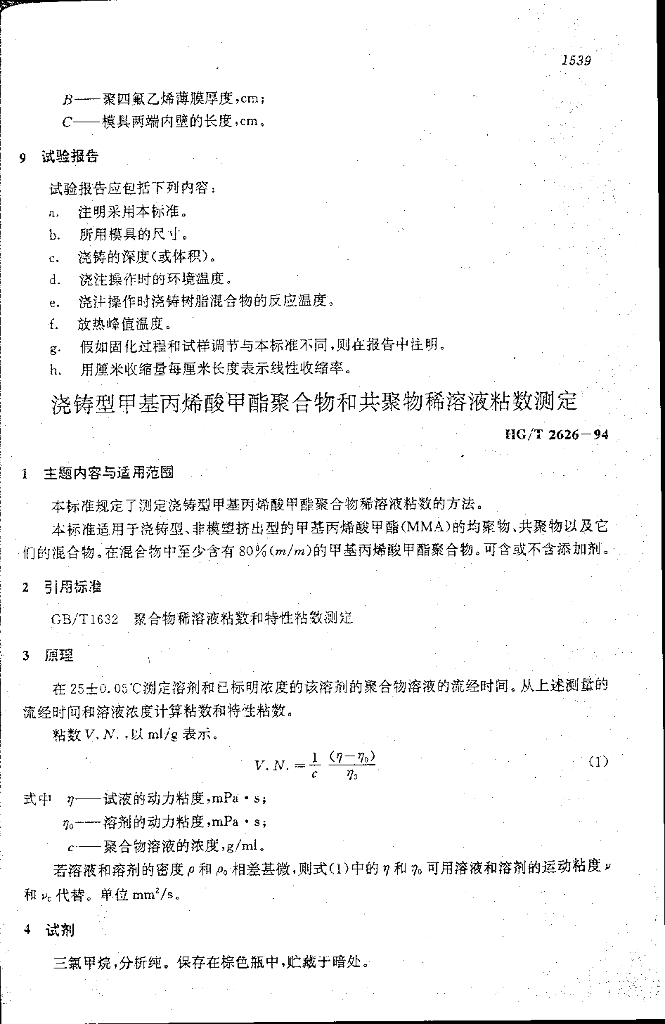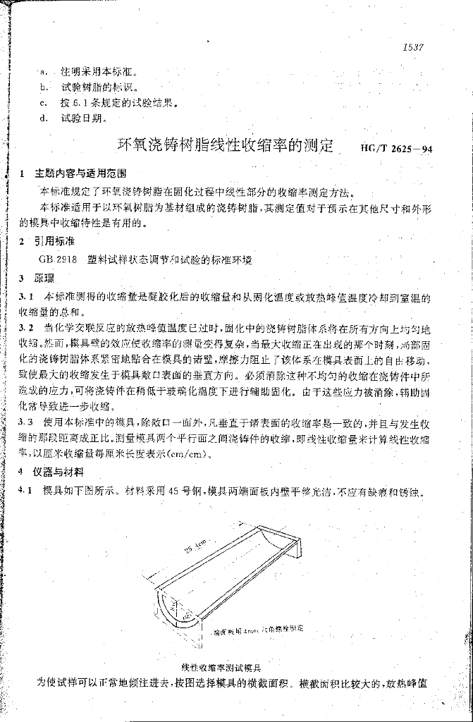 HG/T 2625-1994 环氧浇铸树脂线性收缩率的测定
