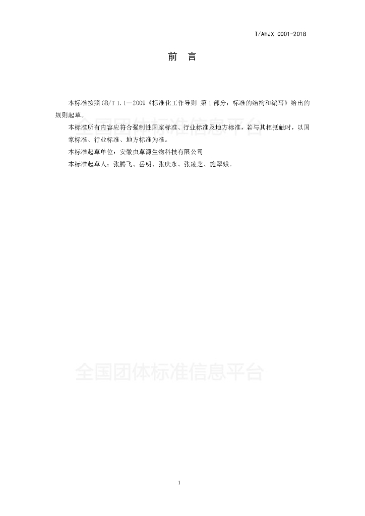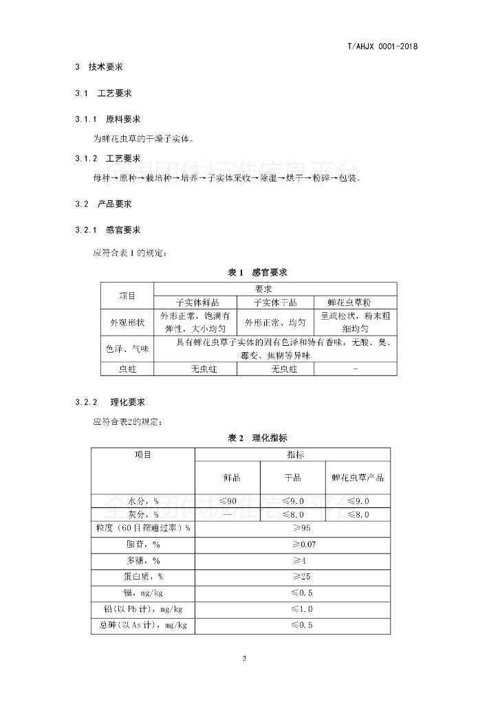 T/AHJX 0001-2018 蝉花虫草—纯粉