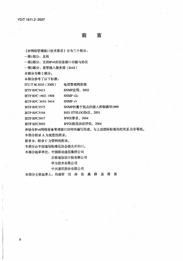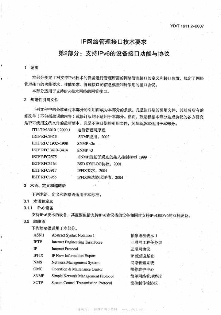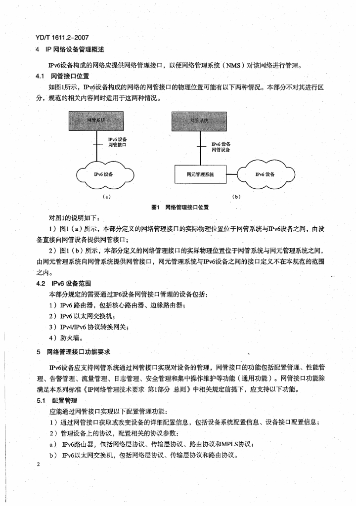 YD/T 1611.2-2007 IP 网络管理接口技术要求 第2部分:支持 IPv6 的设备接口功能与协议
