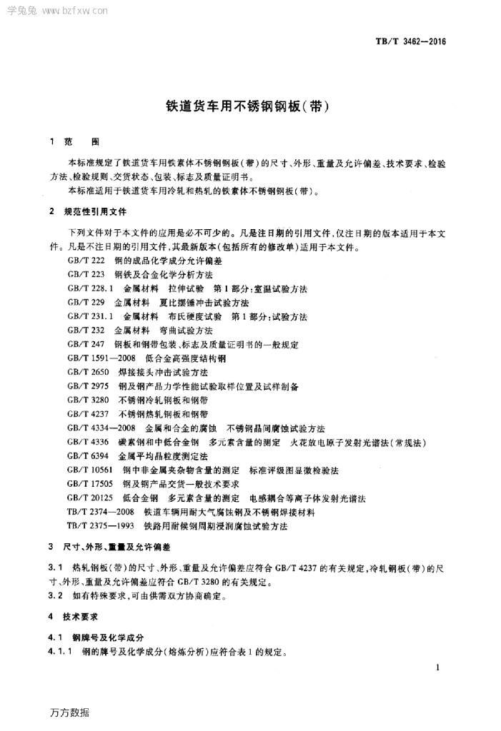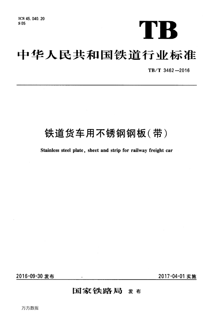 TB/T 3462-2016 铁道货车用不锈钢钢板(带)