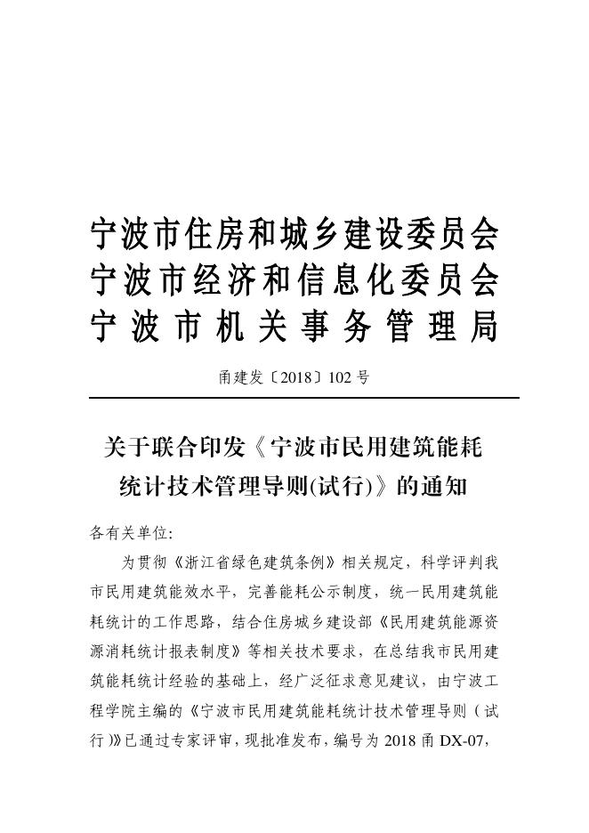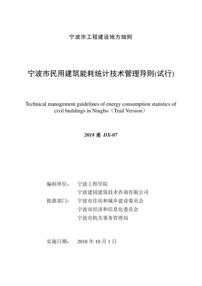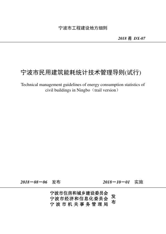 2018甬DX-07 宁波市民用建筑能耗统计技术管理导则