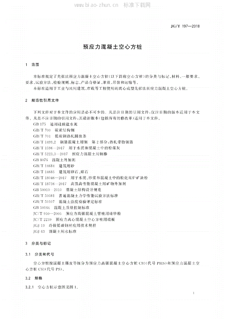 JG/T 197-2018 预应力混凝土空心方桩