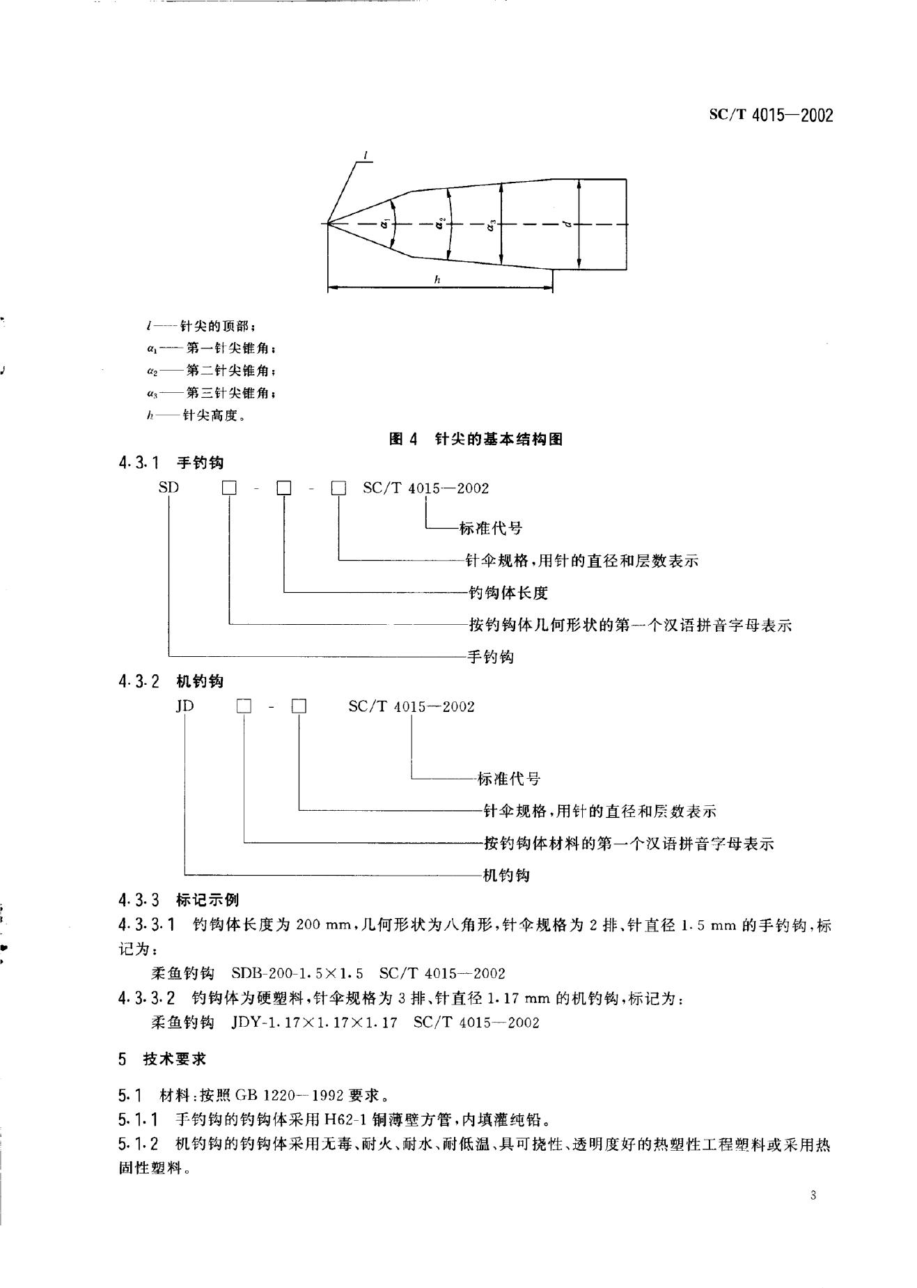 SC/T 4015-2002 柔鱼钓钩