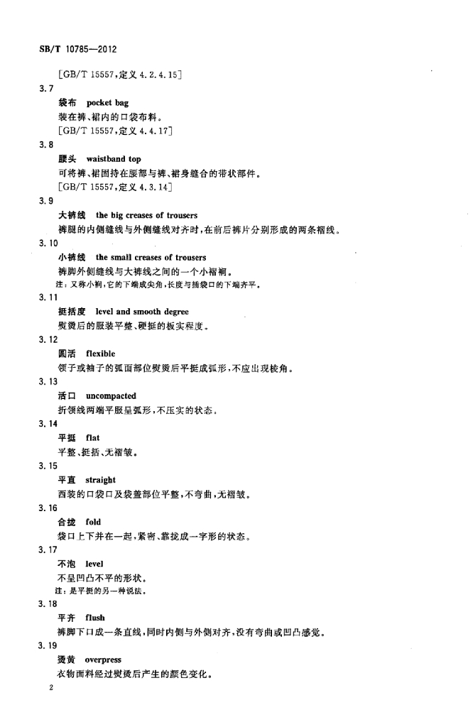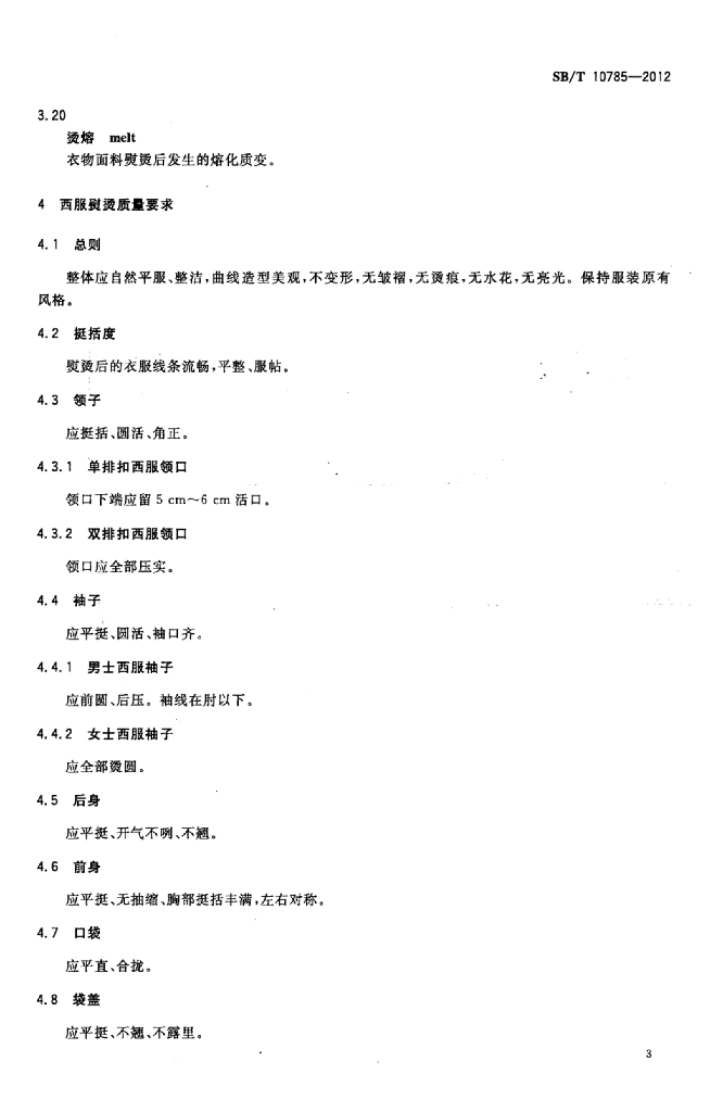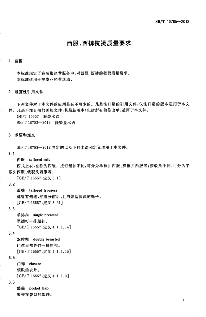 SB/T 10785-2012 西服、西裤熨烫质量要求